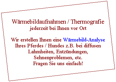 Osteo-/Physiopathie/Akupunktur/ Thermografie/Bioresonanz für Pferde, Hunde und Katzen