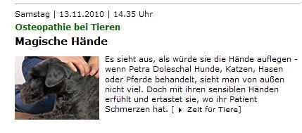 BR3 (Bayrisches Fernsehen) - "Zeit für Tiere" am