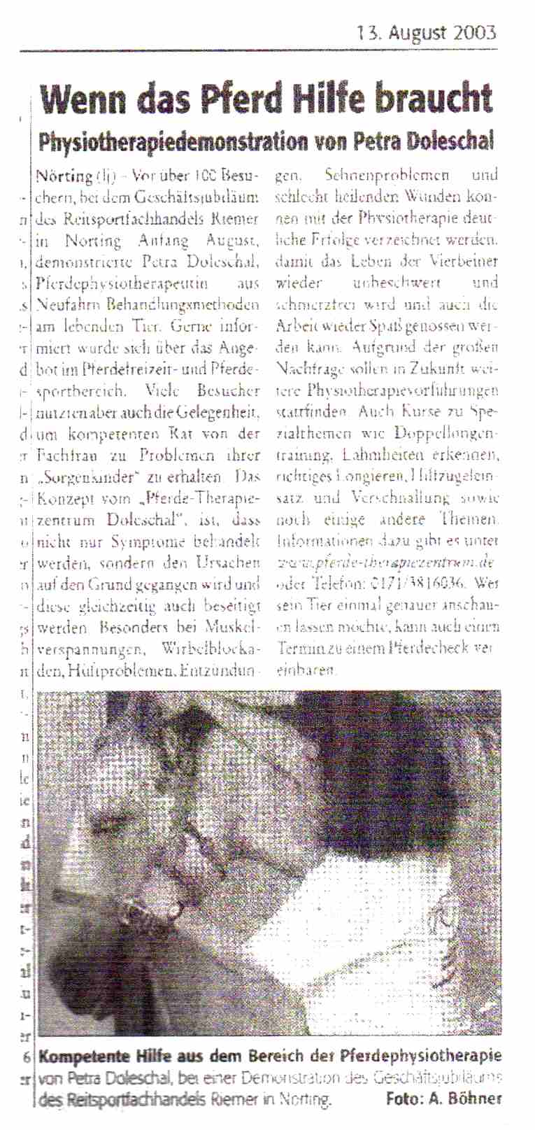 Physiotherapeutische Betreuung der Schulpferde des Reit- und Voltigierclub